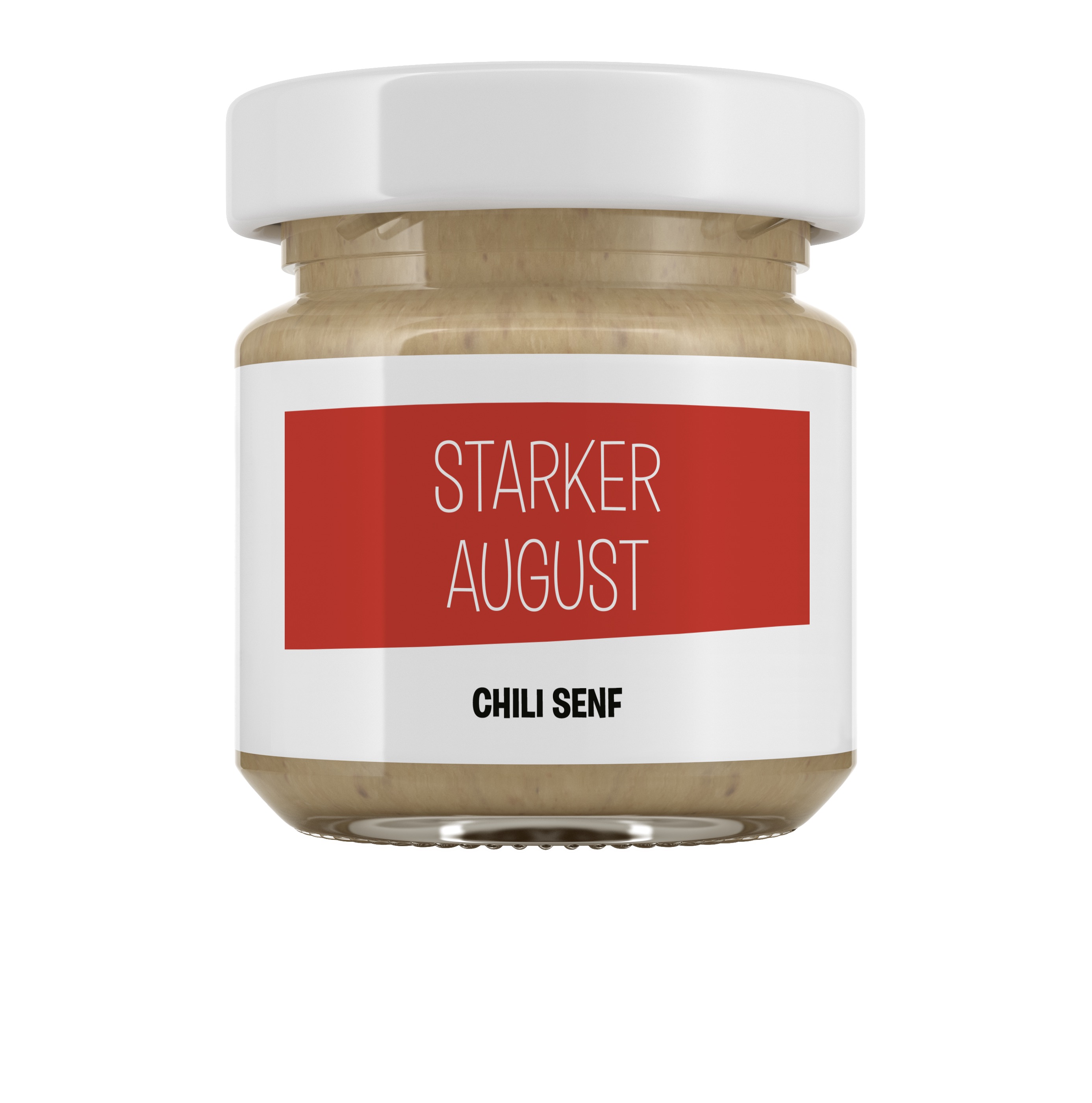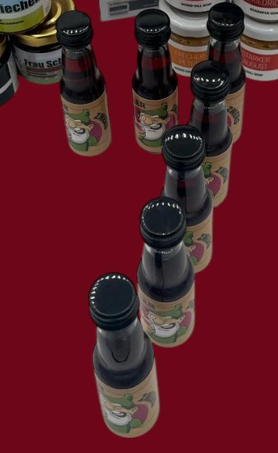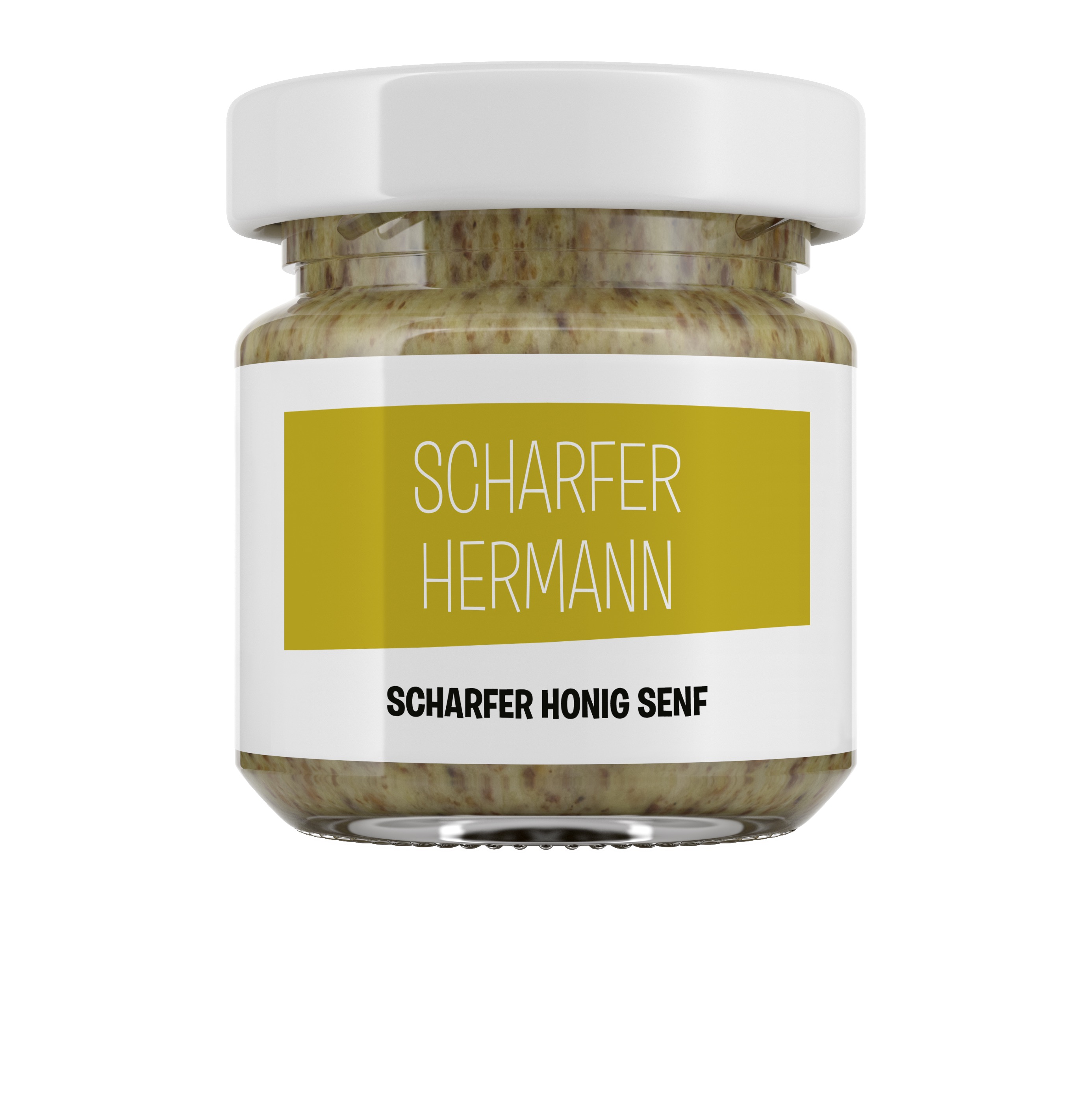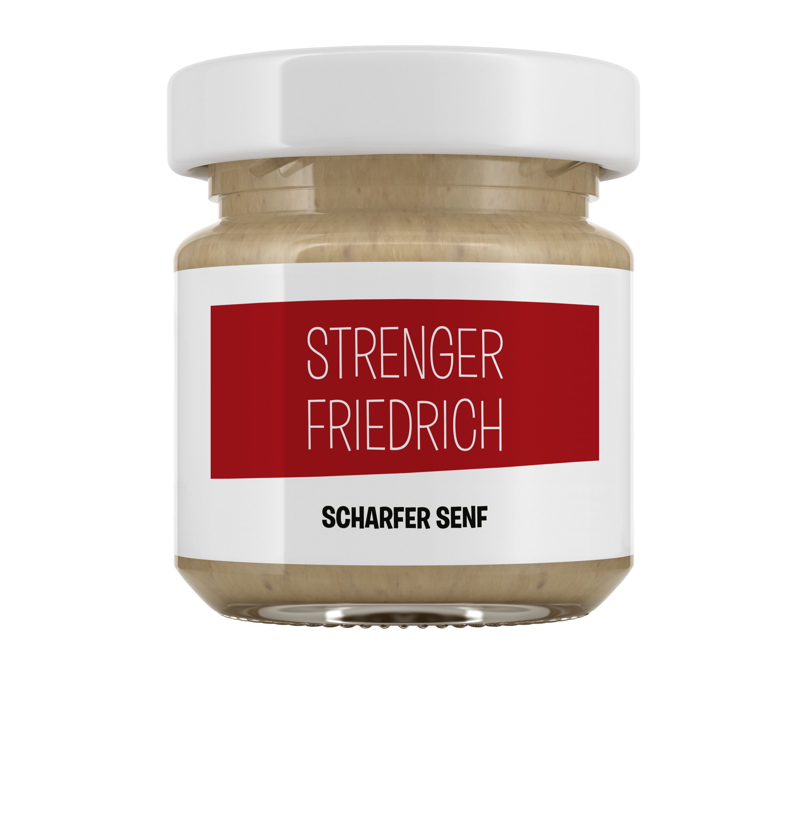 14 Senfsorten à 45ml - alle scharfen Senf, die zum Käse, zu Fisch, die mittelscharfen, die mit Bier - alle Sorten, die wir haben