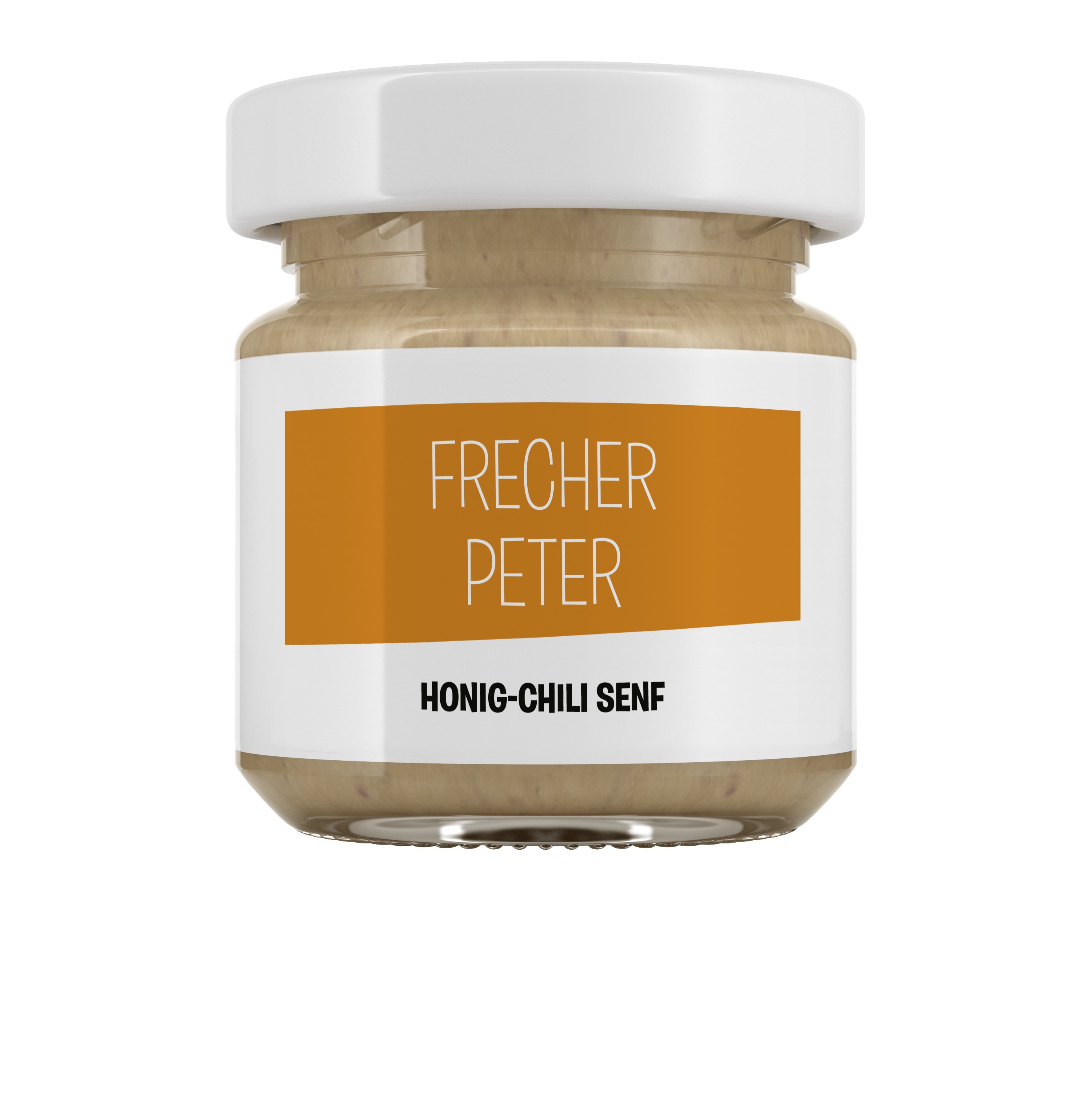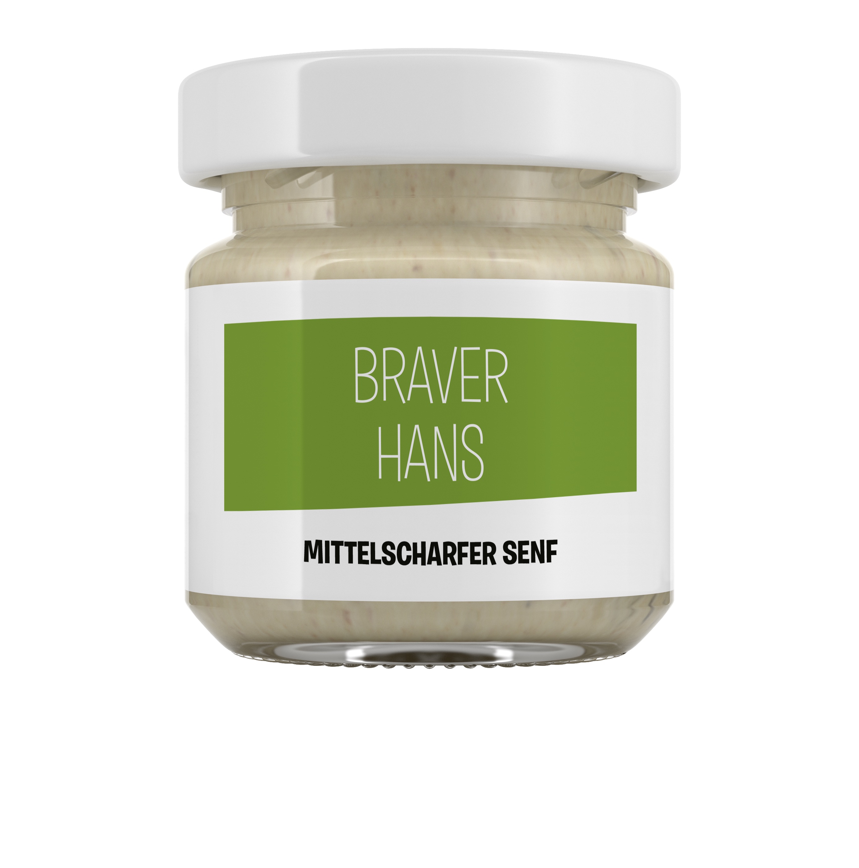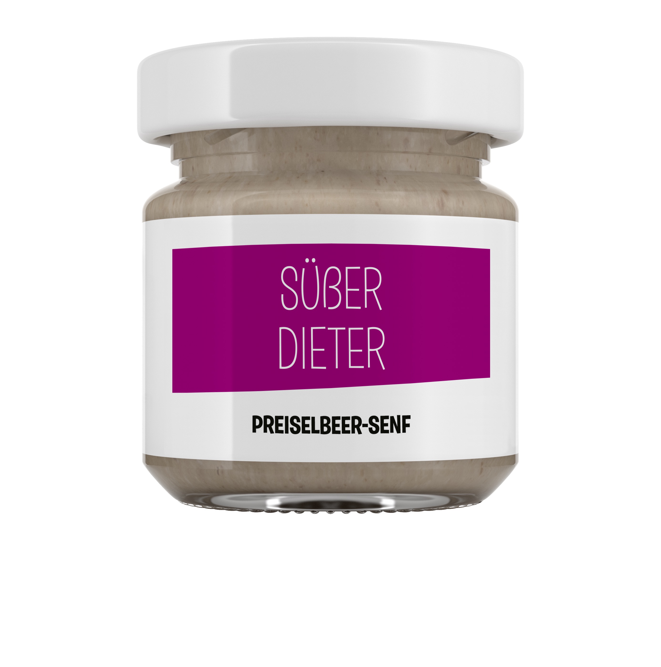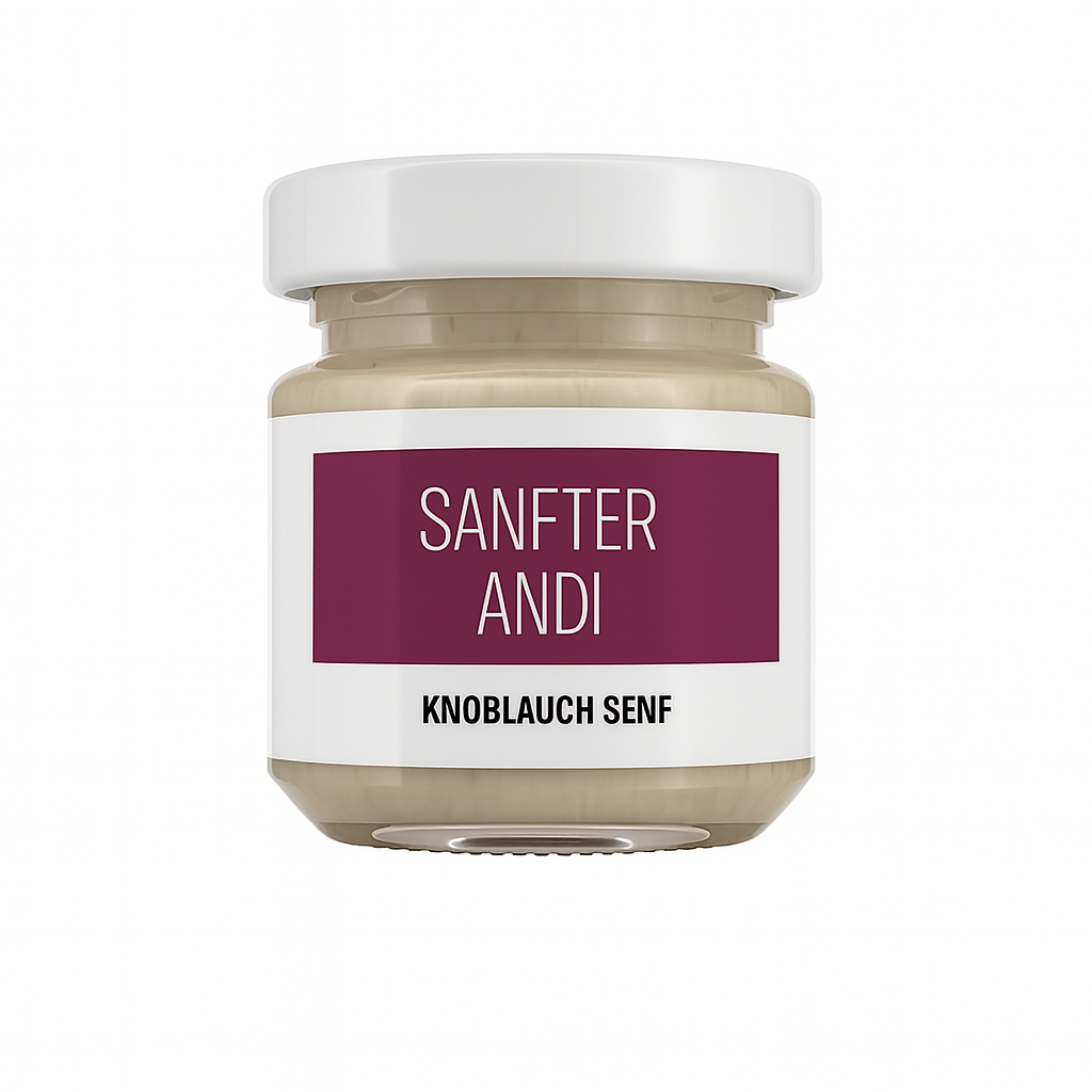 14 Senfsorten à 45ml - alle scharfen Senf, die zum Käse, zu Fisch, die mittelscharfen, die mit Bier - alle Sorten, die wir haben